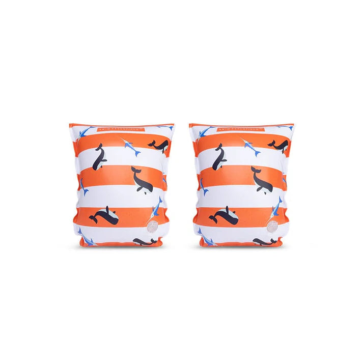 Kırmızı-beyaz çizgili tasarımı ve sevimli balina figürleriyle Ocean Stripes kolluklar, miniklerin yaz stiline eğlenceli bir dokunuş katıyor. 0–2 yaş arası (0–15 kg) çocuklar için uygun olan bu kolluklar, yaz aylarında hem güvenli hem de şık bir yüzme deneyimi sunar.