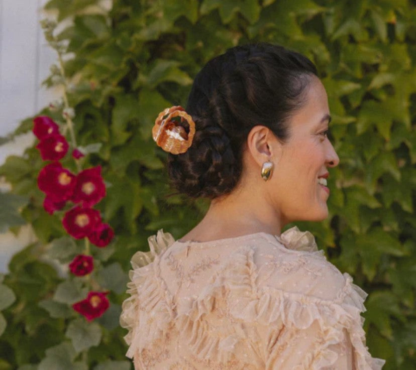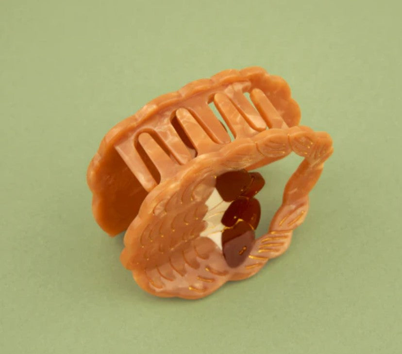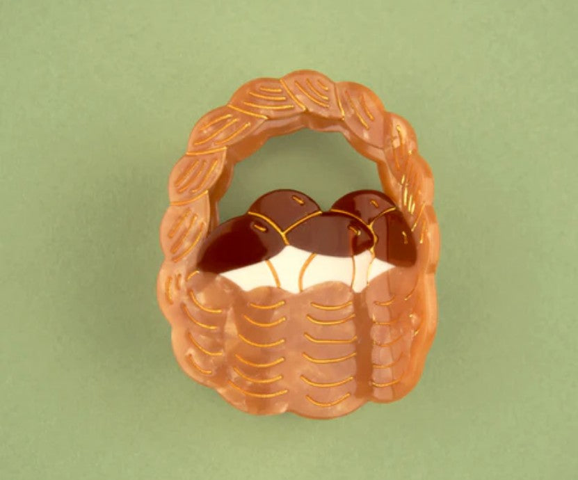 Bu eşsiz saç tokasına hayran kalmamak elde değil: günün mantar hasadıyla dolu küçük bir hasır sepet! Ormandan yeni toplanmış gibi görünen bu tombul mantarlara bayılıyoruz — sanki lezzetli bir sote için hazır gibiler. Tüm saç tiplerine uygun bu özgün aksesuar, doğayı anımsatan sevimli bir görünüm kazandırır.
