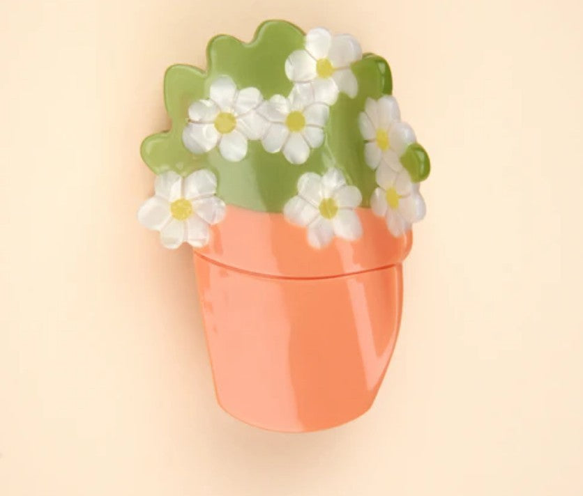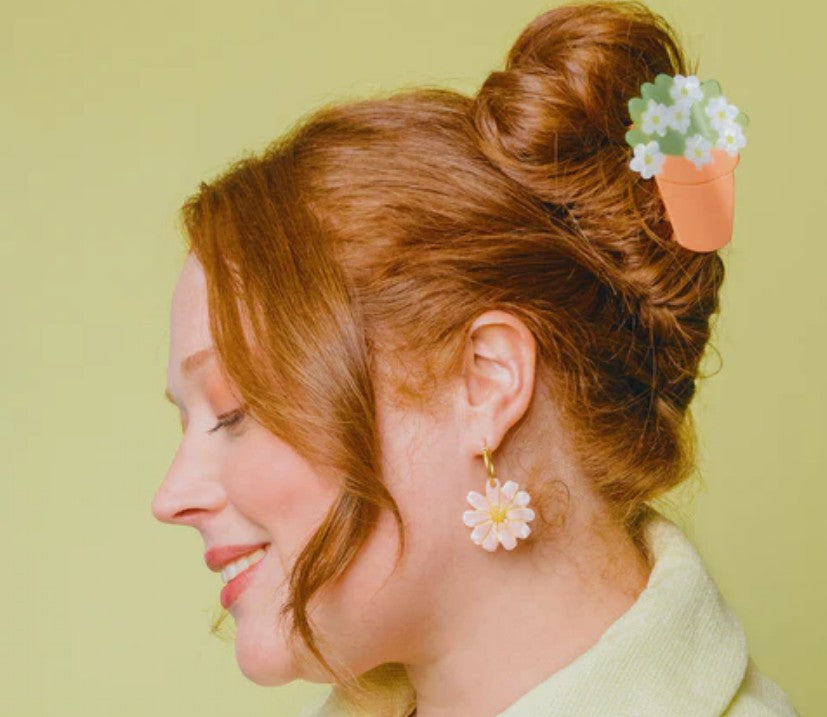 Çiçekli balkonların ruhunu saçlarınıza taşımaya ne dersiniz? Saksı şeklindeki bu saç tokası, terracotta saksısında çiçek açmış minik bir çiçek görünümüyle tam bir göz alıcı! Hem uzun hem de kısa saçlarda kullanılabilen bu özel tasarım, saçlarınıza anında rustik ve bahar gibi bir hava katıyor.