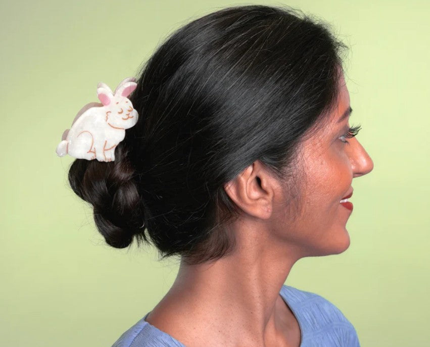 Saçlarınıza anında tatlı bir dokunuş katmak için işte karşınızda beyaz tavşan saç tokası! Yaramaz ifadesi, pembe kulakları ve tombul siluetiyle öylesine sevimli ki, onu yanınızdan ayırmak istemeyeceksiniz.
