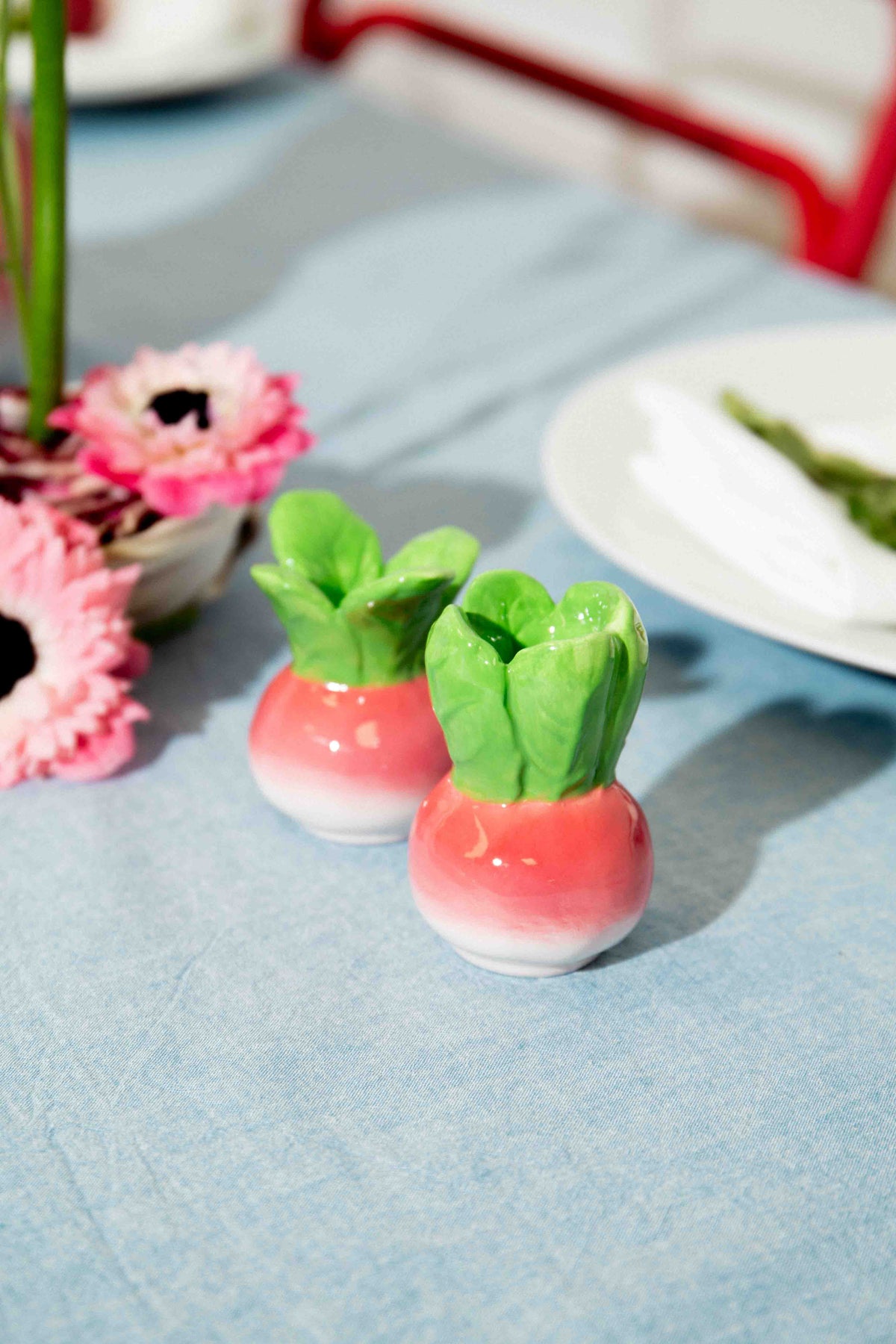 Bahçeden taze! Turp şeklinde tasarlanmış bu tuz ve biberlikler, mutfağınıza veya yemek odanıza doğal ve eğlenceli bir dokunuş katıyor.
