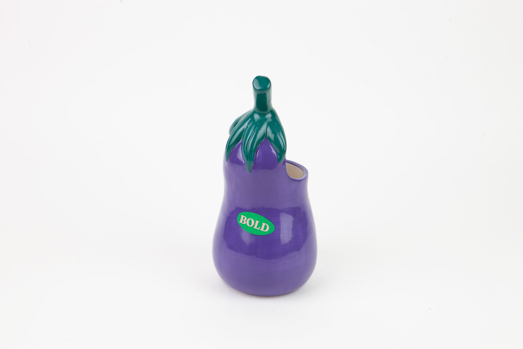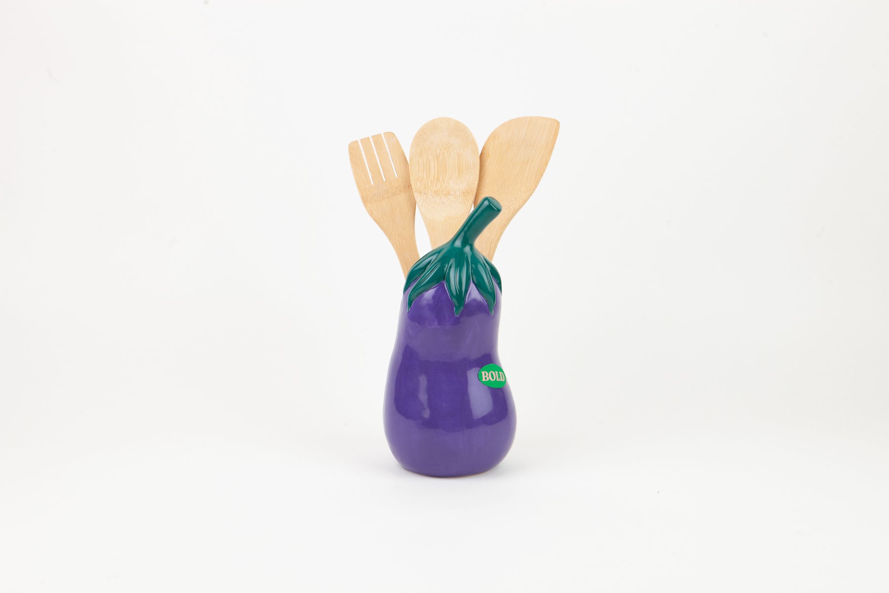 Seramik Kaşıklık, patlıcan şeklinde tasarlanmış olup, pazarların enerjik havasını ve renkli cazibesini yansıtır.