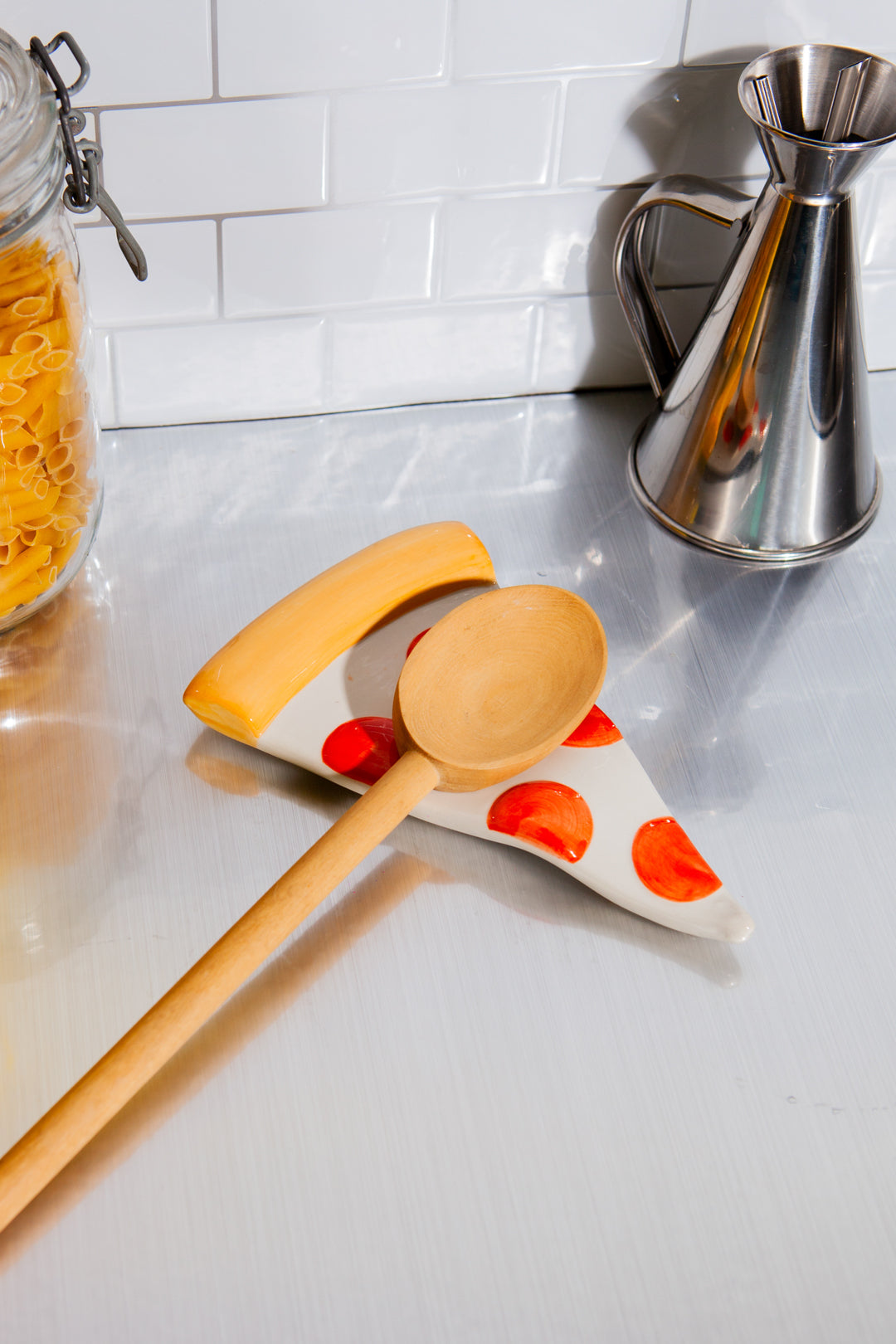 Seramik kaşıklık, pizza şeklinde tasarlanmış olup, 1950'lerin fast food ikonlarının simgesel görüntüsünü yansıtarak, evinize karşı konulmaz bir şekilde lezzetli bir retro dokunuş katıyor.