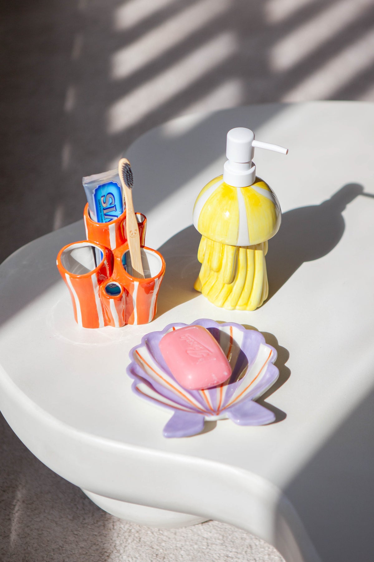 Denizanası şeklinde tasarlanmış bu sabunluk, banyonuzda denizin huzur veren atmosferini yaratırken, şıklığı ve fonksiyonelliği bir arada sunar.