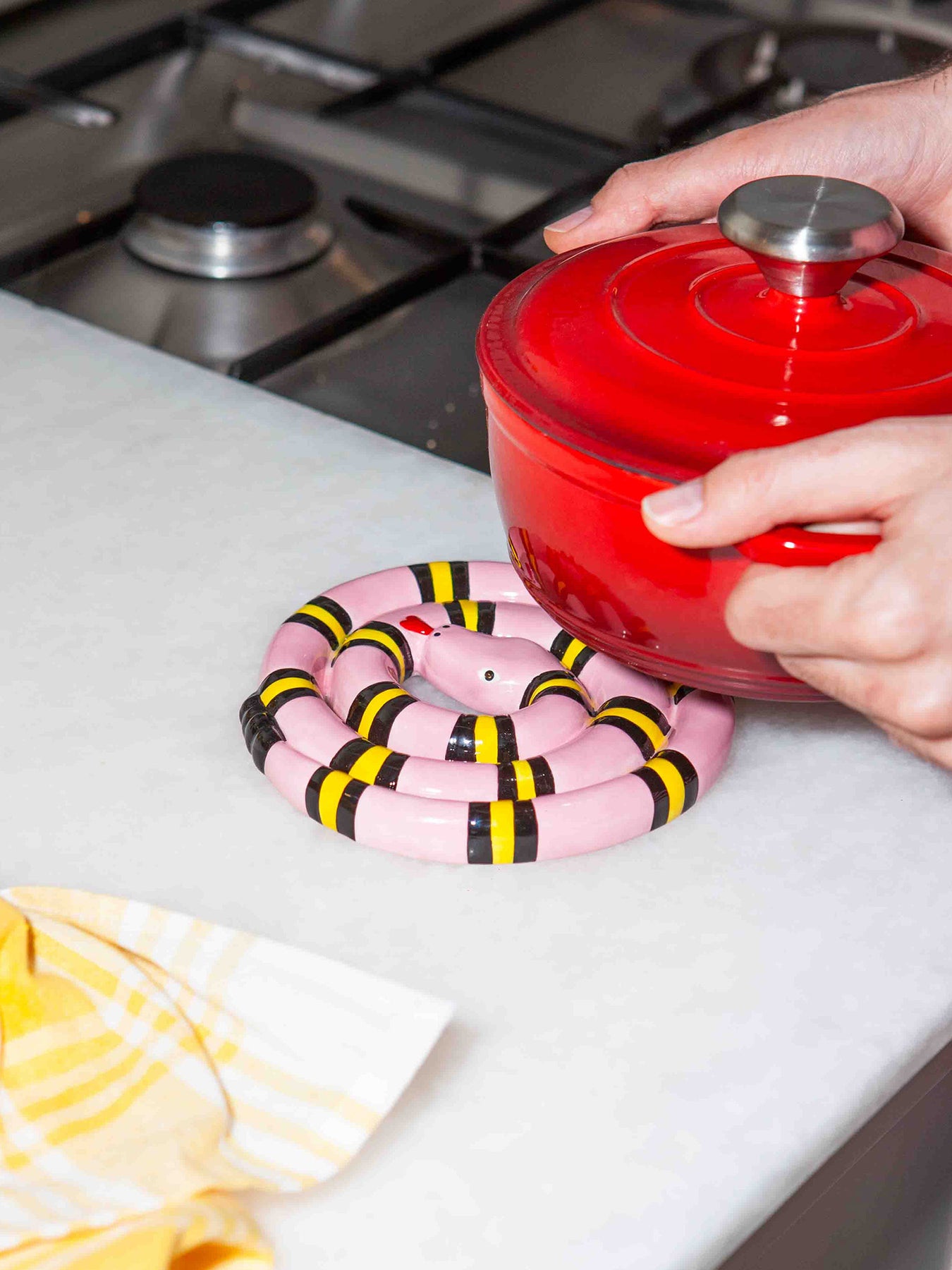 Mutfak tezgahınızı korurken eğlence katın! Pembe yılan nihale, sıra dışı tasarımıyla masanıza cesur ve neşeli bir dokunuş ekliyor