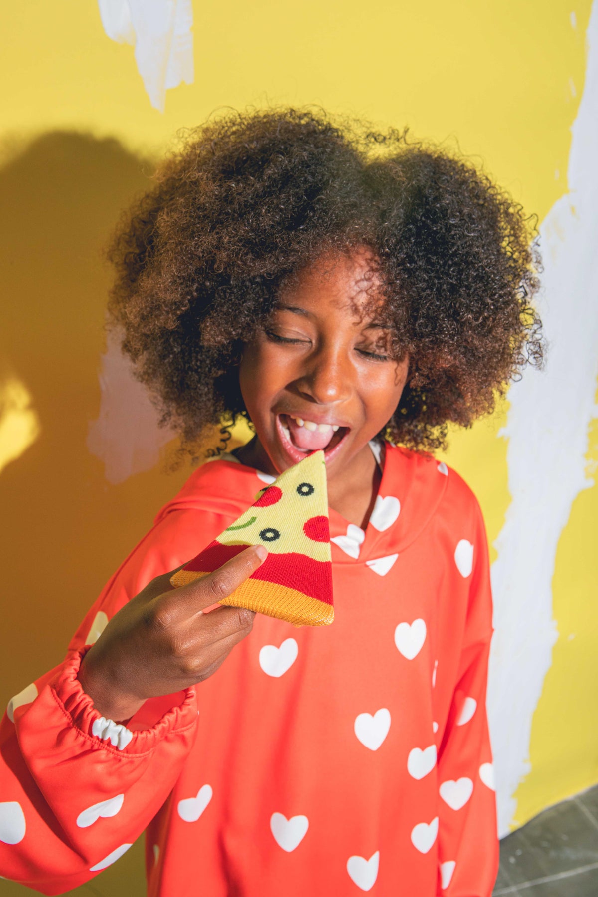 Herkesin favori İtalyan yemeği şeklindeki bu nefis çoraplar, her kombine eğlenceli bir dokunuş katmak için ideal. Minikler, attıkları her adımda pizza sevgilerini gösterebilir. Buon appetito!
