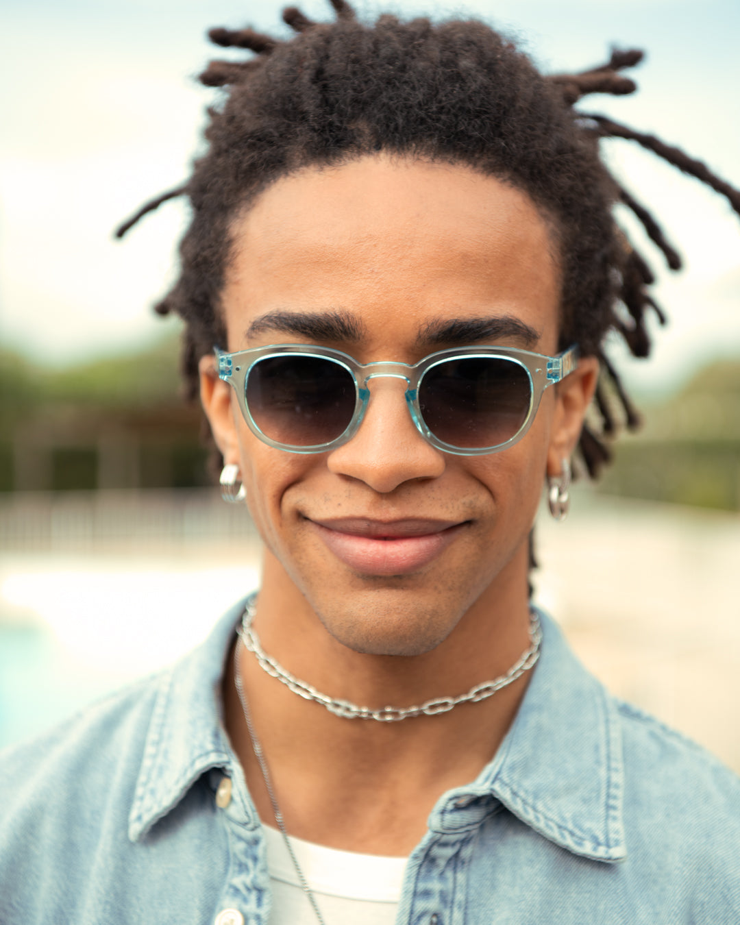 #C Turquoise Stone güneş gözlükleri, canlı ve mineral esintili rengiyle öne çıkar. Parlak ve iddialı kare çerçevesi maceraya hazırdır ve bakışlarınıza derinlik katan mavi degrade camlarla mükemmel uyum sağlar. Stil ve özgürlük arayanlar için ideal bir modeldir.