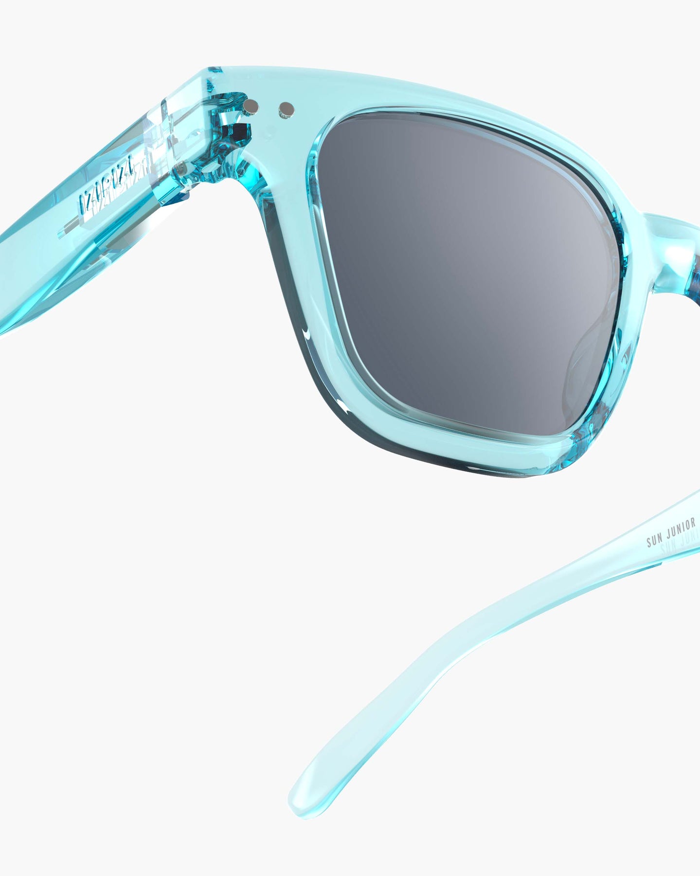 #ROAD Turquoise Stone çocuk güneş gözlükleri, hafif oversized dikdörtgen formu ve canlı, mineral esintili parlak çerçevesiyle öne çıkar. Gri camları, 7–11 yaş arası çocukların gözlerini maksimum UV korumasıyla güvenle korur.