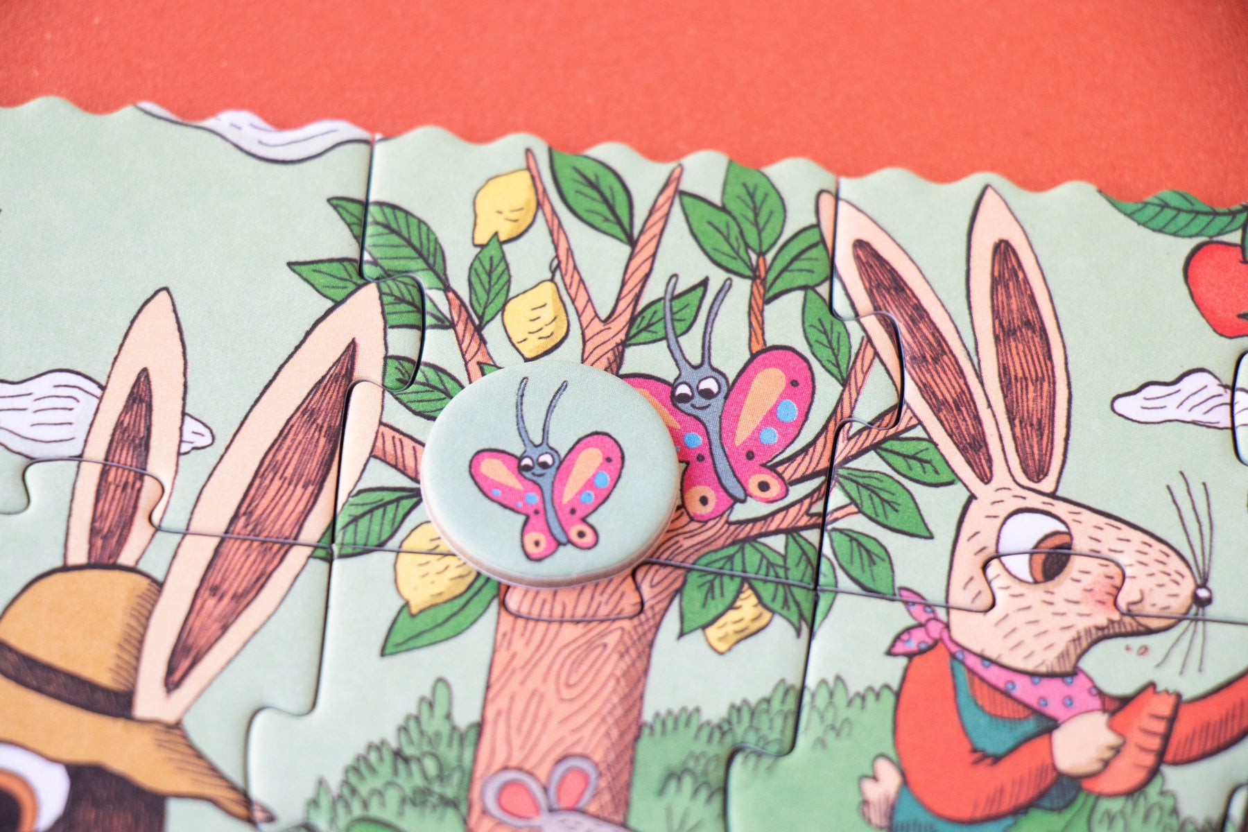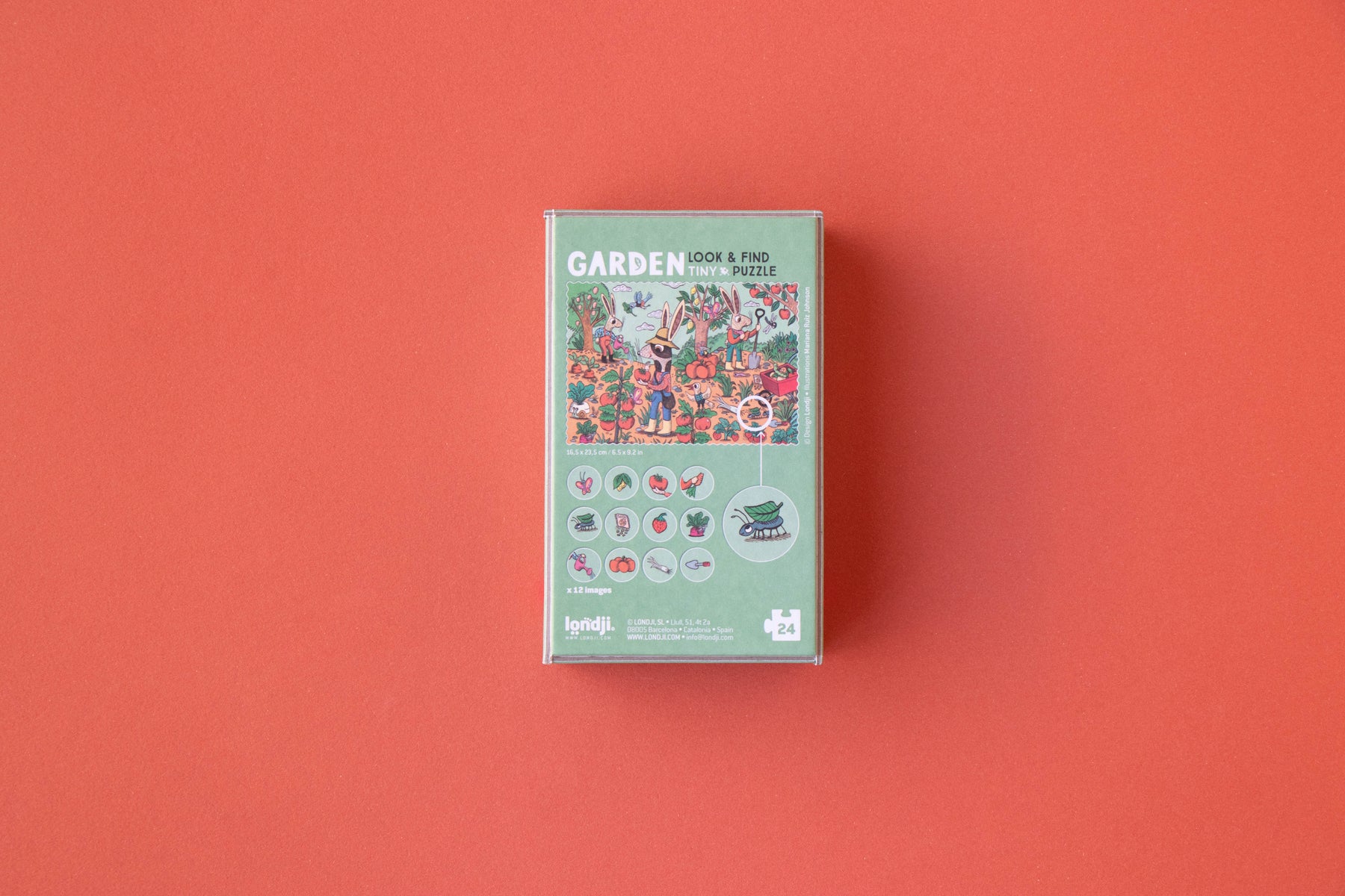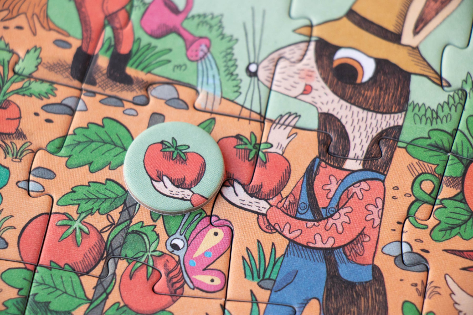 Bahçe, meyve ve sebzeleri öğrenmek için 12 gözlem parçası içeren 24 parçalık küçük bir puzzle. Her yere götürülebilecek cep boyutunda bir puzzle.