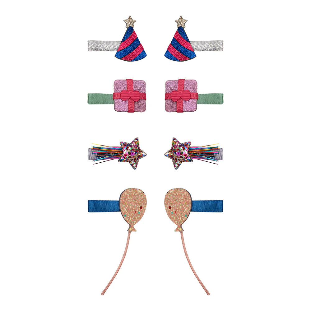 Mimi & Lula Birthday Party Mini 8'li Toka, yıldızlı parti şapkaları, simli balonlar, kayan yıldızlar ve kurdele kaplı hediyelerden oluşan neşeli bir set sunuyor. Her doğum günü kıyafetine ekstra mutluluk katmak için ideal.