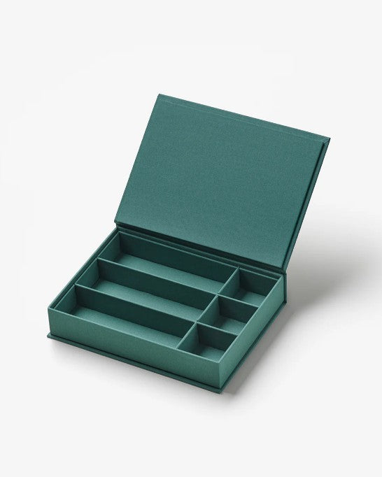 Takı kutularımızla evinizde düzeni ve şıklığı bir arada yaşayın. Kapalıyken zarif bir kitabı andıran kutular, açıldığında üç büyük ve üç küçük olmak üzere toplam altı bölmesiyle anahtar, takı, kalem ve kulaklık gibi eşyalarınızı düzenli şekilde saklamanızı sağlar.