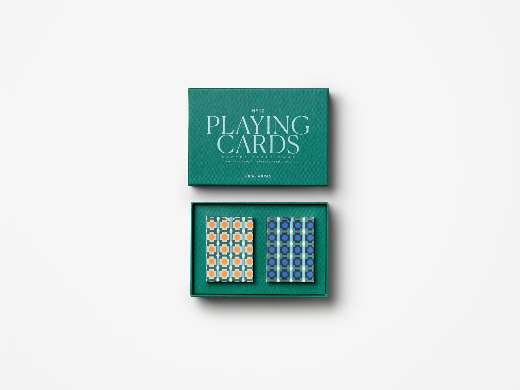 Printworks Classic - Oyun Kartları Seti ile kart oyunlarına şık bir dokunuş katın. Zarif renk paleti ve özgün grafik tasarımıyla bu kartlar, hem oyun oynarken hem de dekoratif olarak sergilerken evinize canlılık katar.