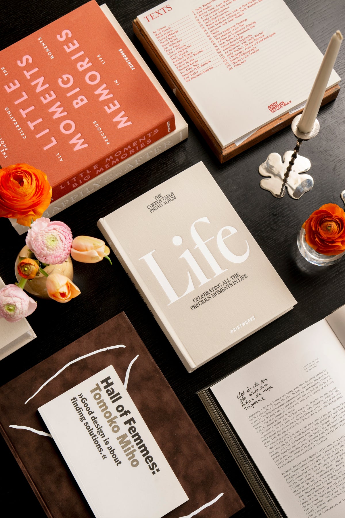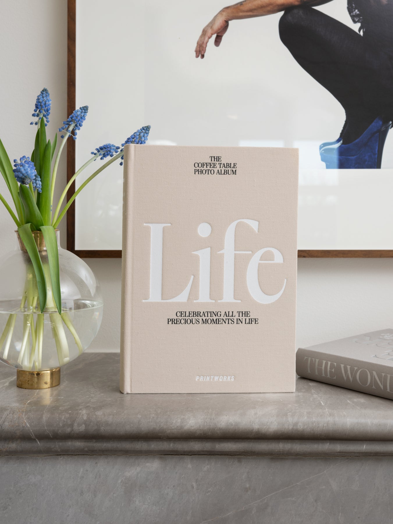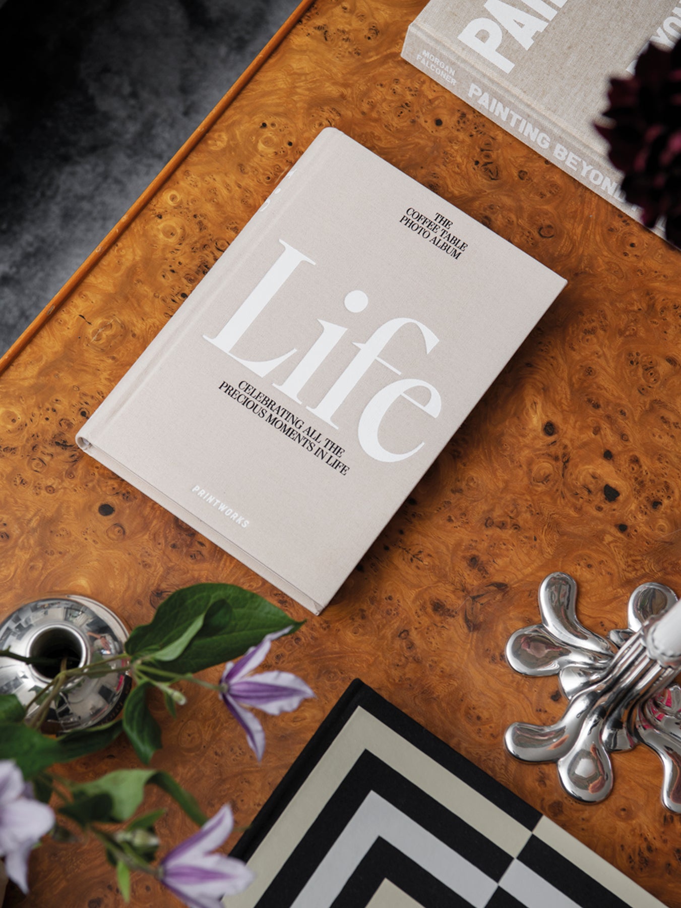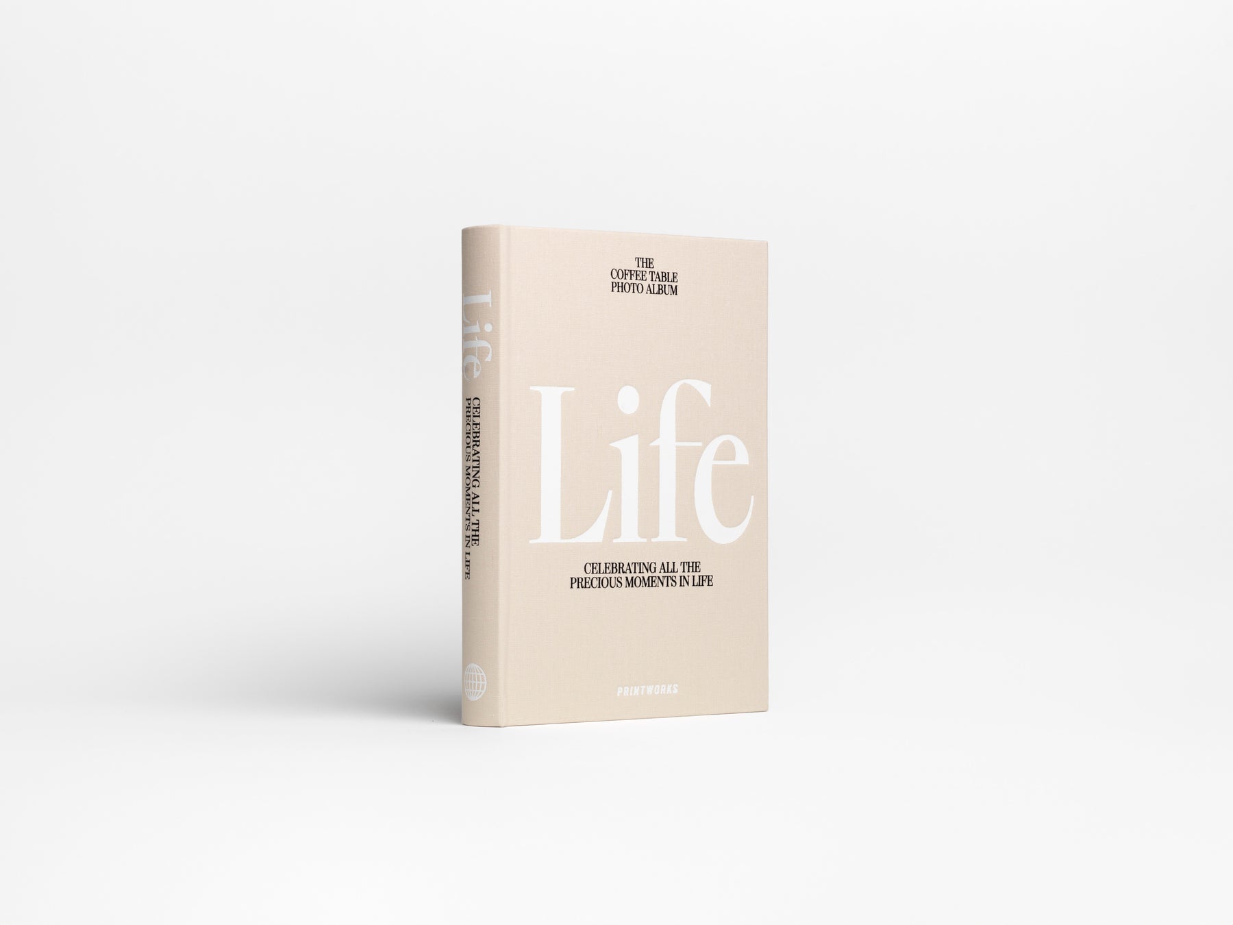 Her kitaplığın vazgeçilmezi olacak kitap görünümlü fotoğraf albümümüz Life Beige'i keşfedin. 28x19 cm ölçülerinde, koyu gri kumaş kaplama ve siyah yazılı sert kapağa sahiptir. Geleneksel kutu içinde sunulan, sehpa üzerinde dekoratif obje olarak da kullanılabilen albümlere şık ve modern bir alternatiftir.