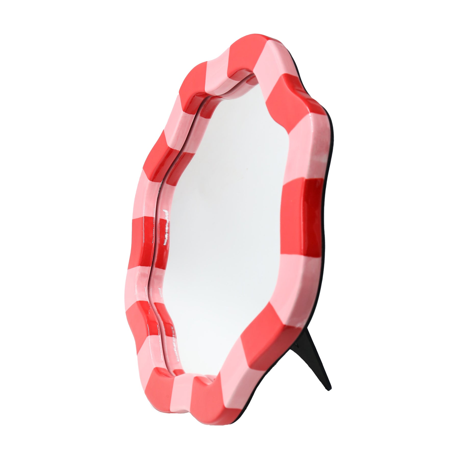 Belçika tasarımı olan ve İspanyol canlılığından ilham alan bu ayna, iki enerjik deseni bir araya getirir: pembe ve kırmızı çizgilerden oluşan Sunny Stripes ve beyaz zeminde renkli çiçeklerin yer aldığı Spring Splash.