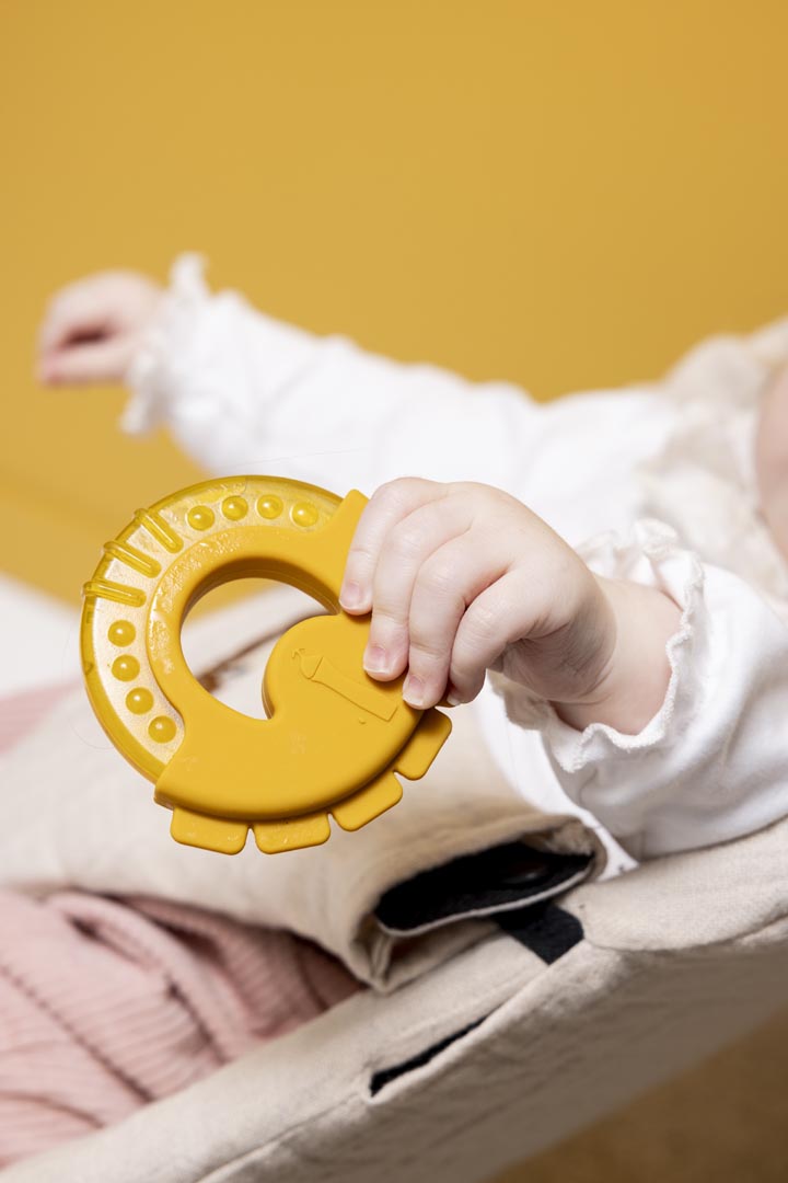 Diş çıkarma döneminde serinletici ve rahatlatıcı olan bu su dolu silikon oyuncak, küçük ellerin kavraması için yumuşak ve kolaydır. Farklı dokuları hissedebilir ve çiğneyebilir, ayrıca dört sevimli hayvan yüzünden birini seçebilirler. Buzdolabında güvenle kullanılabilecek malzemelerden üretilmiştir.