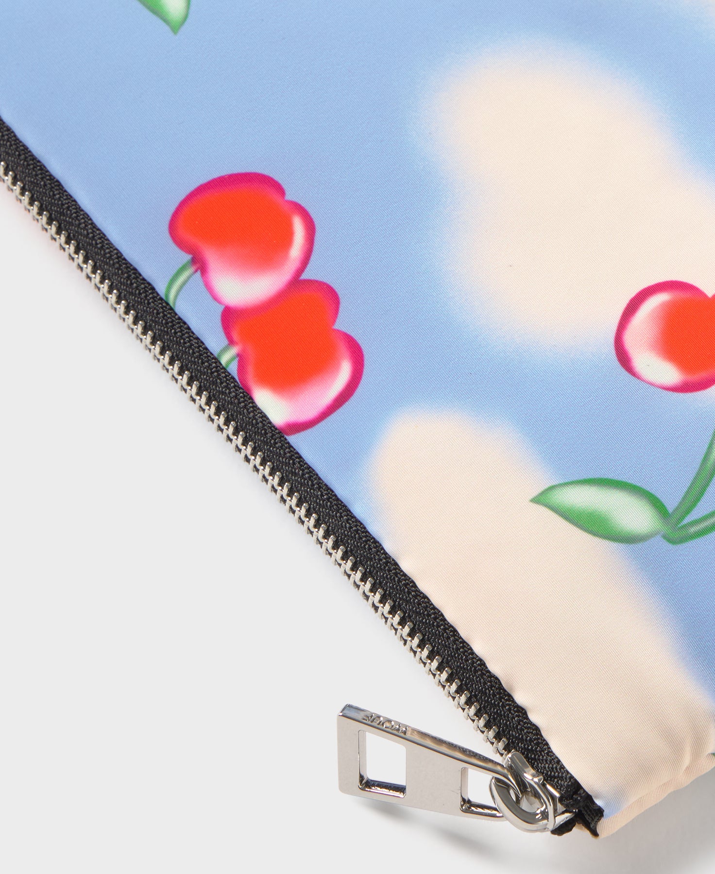 %100 geri dönüştürülmüş kumaşlardan üretilen Cherry Sky el çantası, günlük eşyalarınızı düzenlemek ve saklamak için idealdir. Suya dayanıklı bir yüzeye sahip olup, anahtarlar, pasaport ve diğer küçük eşyalar için tek bir bölme içerir.